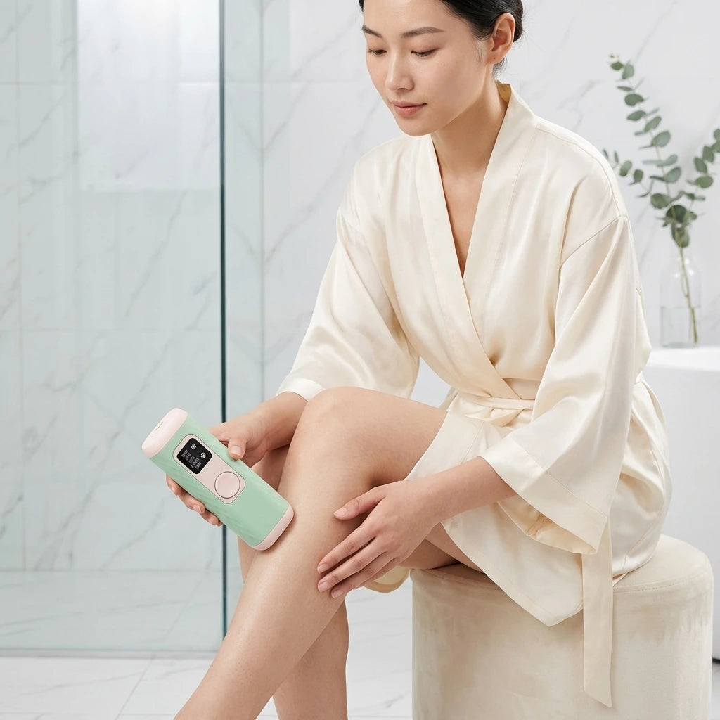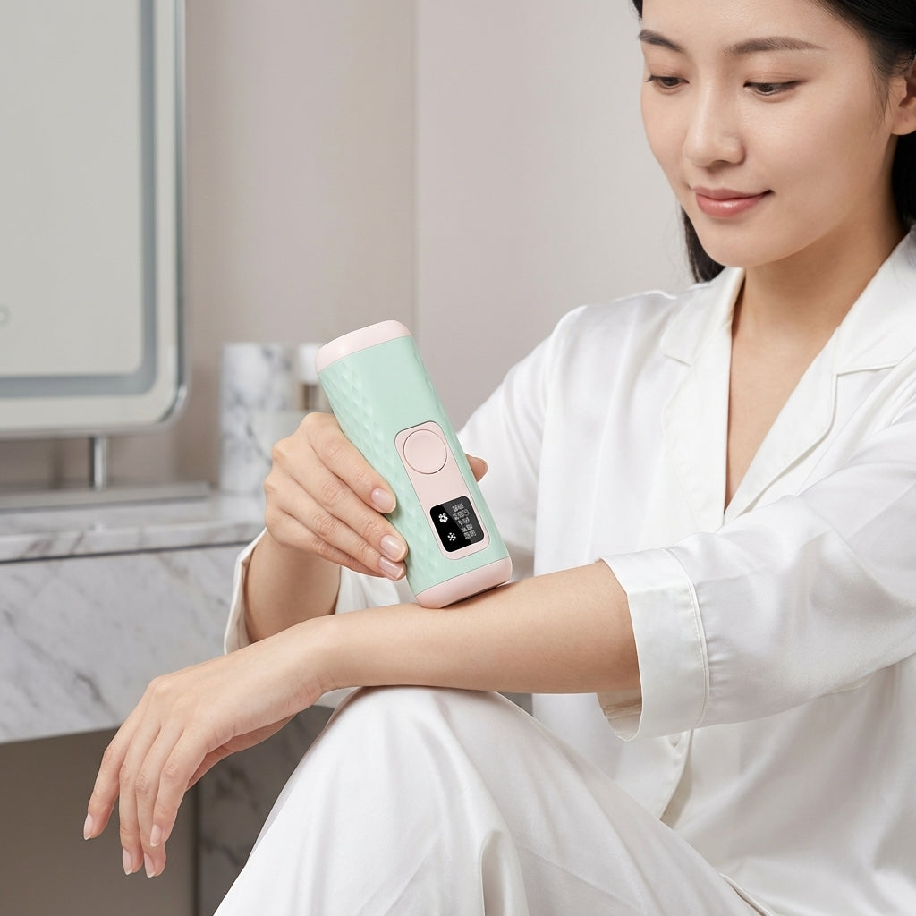 Not at all. Gloreine is built with Ice Cool technology that continuously cools your skin during every flash. Most women describe the sensation as a gentle warm flicker — far more comfortable than waxing, threading, or salon laser. Even on sensitive areas like the upper lip and bikini line, the experience stays calm and comfortable.
